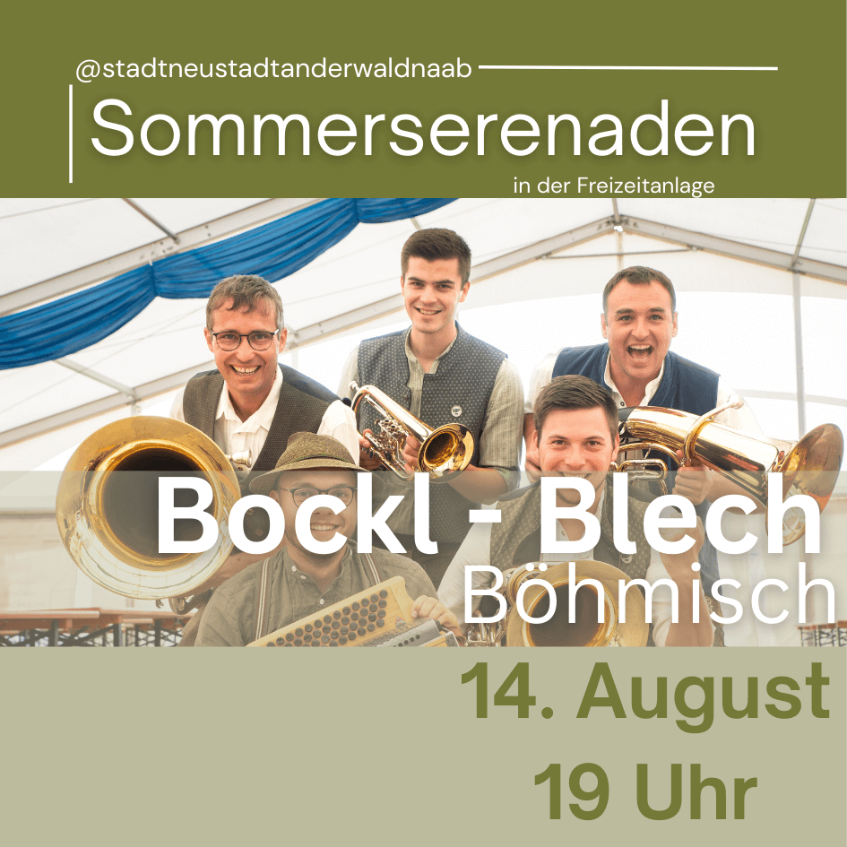 Am Donnerstag, 14. August 2025 heißt es ein letztes Mal in diesem Jahr: Sommer, Sonne und böhmische Klänge!Ab 19:00 Uhr sorgen die fünf Musiker von Bockl-Blech in der Freizeitanlage Neustadt für beste Stimmung und laden zum Tanzen, Mitschunkeln und Genießen ein. Für das leibliche Wohl ist vor Ort bestens gesorgt – mit kühlen Getränken, herzhaften Schmankerln und süßen Leckereien. 🍔🥨🍻Und das Beste: Die Wetteraussichten könnten nicht schöner sein – ein warmer Augustabend, wie gemacht für Musik unter freiem Himmel. 🌈✨ Kommt vorbei, bringt eure Freunde mit und feiert mit uns den Abschluss der Neustädter Sommerserenaden 2025.Lasst uns gemeinsam den Sommer musikalisch ausklingen lassen und in die Sommernacht tanzen! 💃🕺 📅 Termin: Donnerstag, 14. August 2025🕖 Beginn: 19:00 Uhr